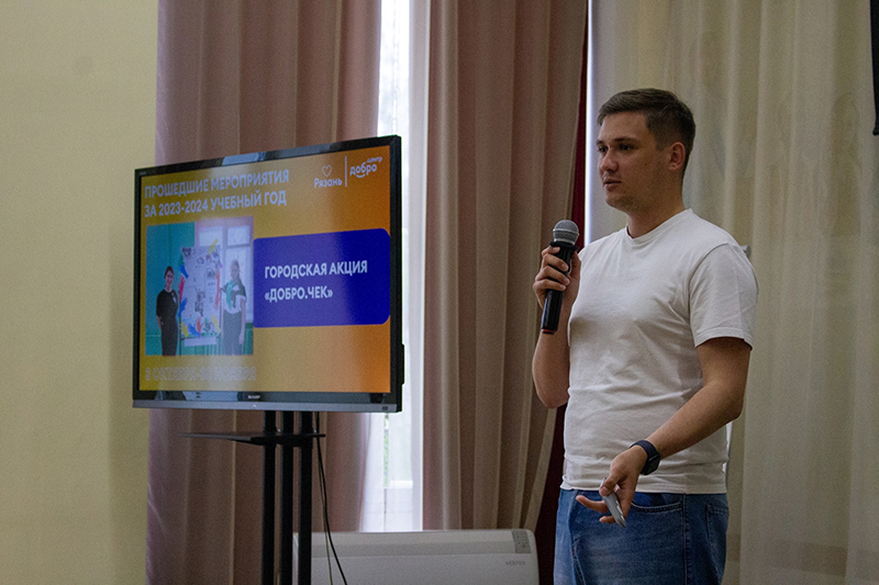 На общей части собрания Юрий Пинигин, директор Добро.Центра в г. Рязани, рассказал об акциях, которые были проведены в этом учебном году, а также о запланированных на ближайшее время мероприятиях.
