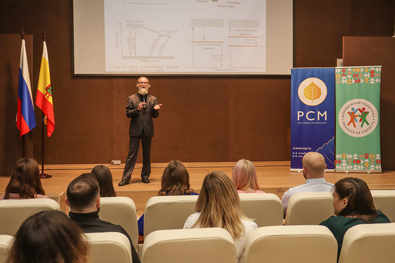 Одной из самых интересных площадок, объединяющих теорию и практику, стала встреча с Владимиром Николаевичем Решетовым, профессором НИЯУ МИФИ и НИУ МФТИ, доктором физико-математических наук, который рассказал все о лазерах и продемонстрировал на практике, как лазер прожигает бумагу.