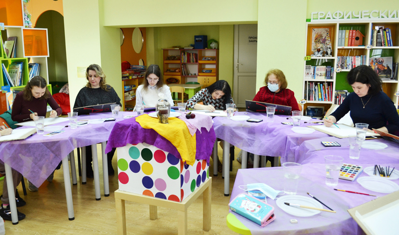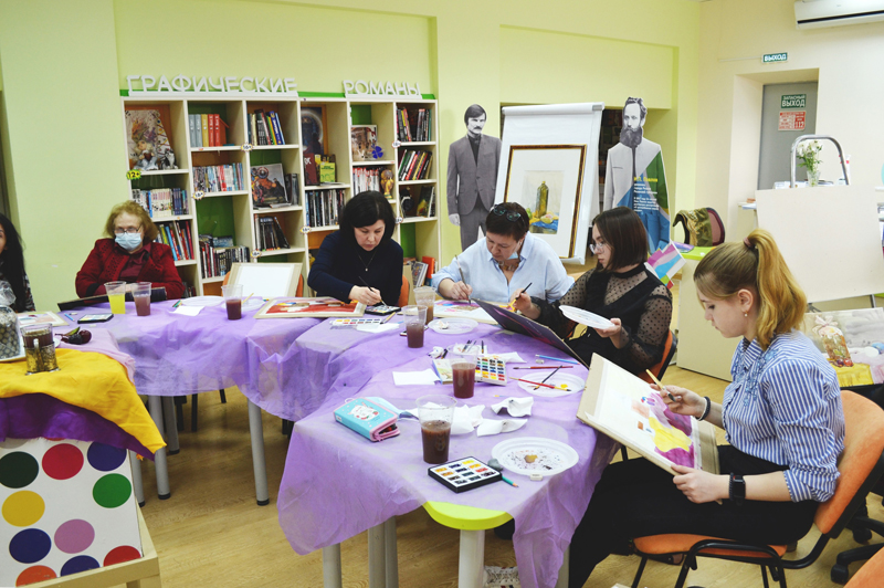 23 апреля в областной библиотеке им. Горького прошел очередной мастер-класс по акварельной живописи. Занятие традиционно провел преподаватель студии «Шмель», известный рязанский художник, член Союза художников России Сергей Викторович Абакумов.
