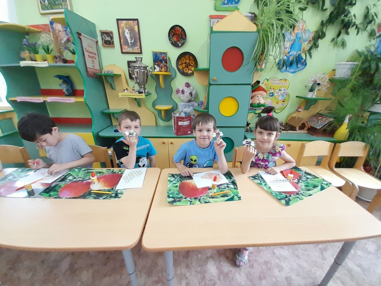 В заключение эко-часа дошколята с большим старанием сделали своими руками пчелок-тружениц из бумаги.
