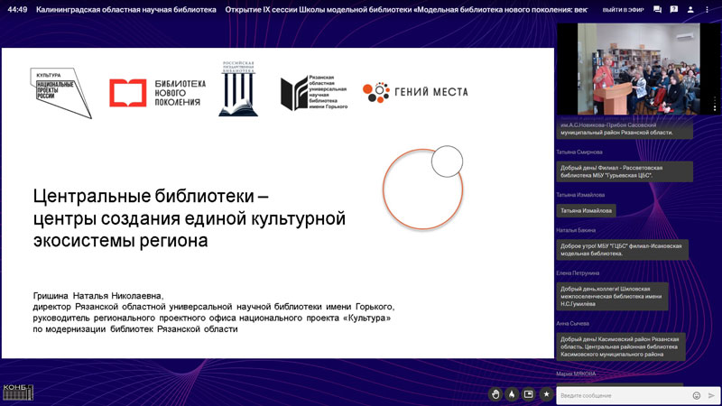 К просмотру трансляции мероприятия присоединились сотрудники государственных и муниципальных библиотек Рязанской области.
