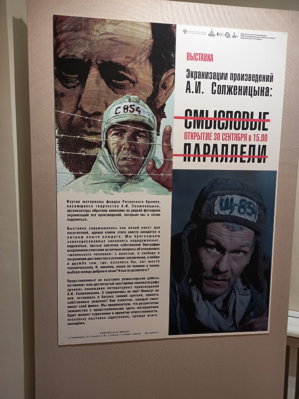 В Музейном центре им. А.И. Солженицына состоялось открытие выставки «Экранизация произведений А.И. Солженицына: смысловые параллели», посвященной произведениям Александра Солженицына, переведённым на киноязык.