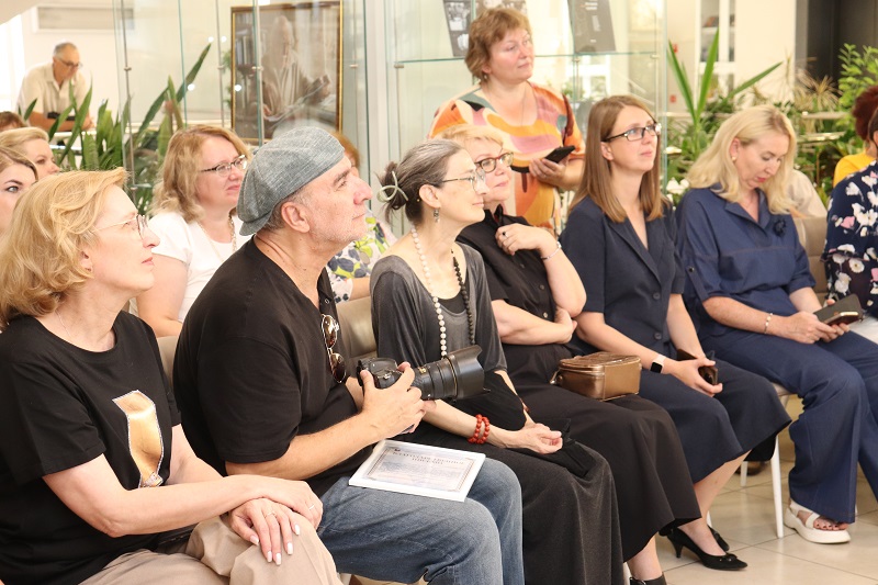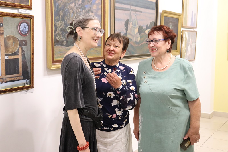 Для присутствующих была проведена экскурсия по выставке – они первыми смогли заглянуть в пространство творческой лаборатории Виктора Иванова и стать сопричастными великому таинству сотворения образа: человека, природы, мира…