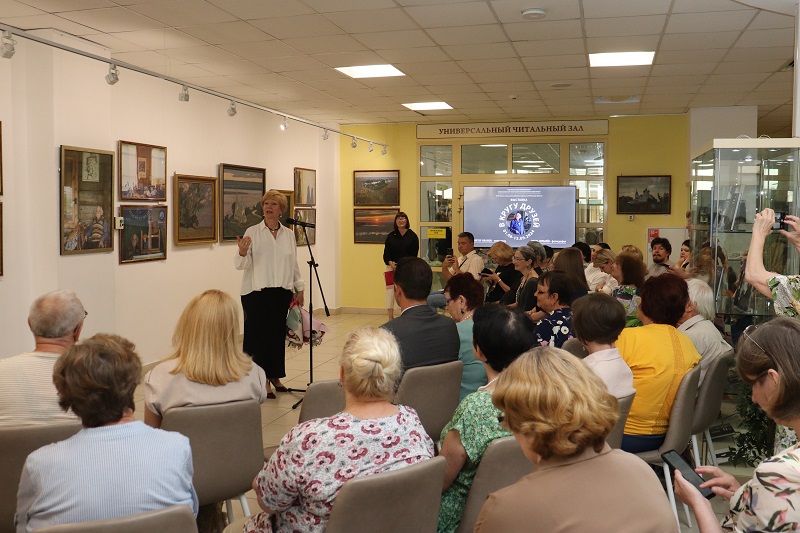 Ведущая мероприятия, куратор выставки Марина Алексеевна Абрамова раскрыла секрет: идея выставки принадлежала лично директору библиотеки, заслуженному работнику культуры РФ Наталье Николаевне Гришиной, связанной узами дружбы с великим художником долгие годы.