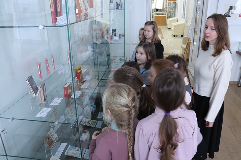 Ребята побывали на выставках, представленных в библиотеке. В экспозиции «Владимир Маяковский в графике и экслибрисе. Миниатюрные издания поэта» школьники смогли увидеть портреты поэта разных художников, а также мини-книги, предоставленные членами Московского клуба любителей миниатюрной книги. Особое внимание привлекла микрокнига: дети с интересом присмотрелись к миниатюре и задумались, есть ли другие издания такого размера.