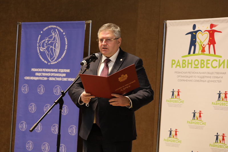 Исполняющий обязанности заместителя председателя правительства Рязанской области Валерий Сергеевич Емец передал приветствие губернатора Рязанской области Николая Викторовича Любимова. В канун Международного женского дня глава региона поздравил женщин с наступающим праздником.