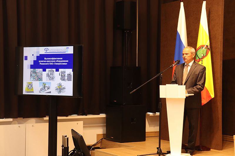 С докладом о применении высокоэффективного кузнечно-прессового оборудования на рязанском ПАО «Тяжпрессмаш» выступил заместитель главного инженера предприятия, заслуженный конструктор РФ, почетный машиностроитель России, кавалер ордена «Золотая подкова», член-корреспондент Российской кузнечной академии имени А. И. Зимина Николай Павлович Петров. Участники заседании узнали об организации рабочего процесса на ПАО «Тяжпрессмаш», о важности предприятия для экономики Рязанского региона и России, об изделиях, производимых на машиностроительном заводе. Как отметила Наталья Николаевна Гришина, благодаря таким людям, как Николай Павлович Петров, завод смог пережить тяжёлые 1990-е годы.