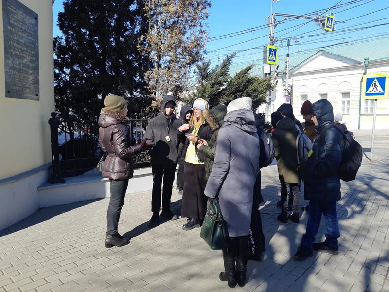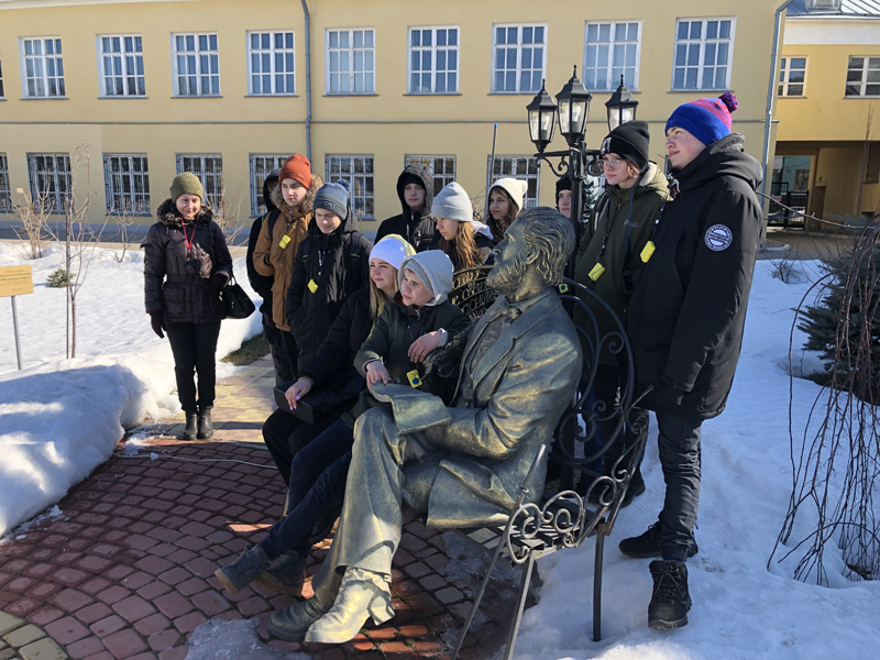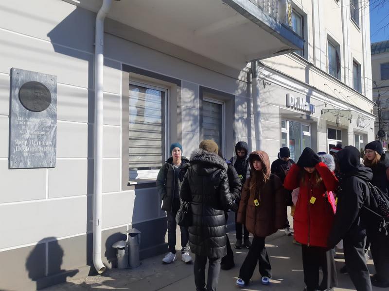 Экскурсию для учащихся 8 класса школы № 19 (25) имени вице-адмирала В. М. Головнина г. Рязани провела Светлана Соловкина, старший научный сотрудник Рязанского музея путешественников, который является партнером проекта. В ходе экскурсии ребята прошли по историческому центру города, вспомнили биографию поэта, услышали рассказ об истории здания, в котором когда-то размещался гимназический пансион, и узнали, какие важные события в жизни поэта связаны с этим старинным особняком. На хорошо знакомой всем рязанцам улице Полонского остановились у мемориальной доски на жилом здании, на месте которого когда-то стоял дом Александры Богдановны Кафтыревой, бабушки поэта.