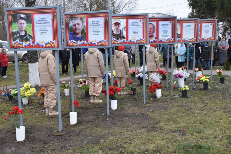 Пителинцы почтили память рядового Алексея Владимировича Мозгунова, жителя села Нестерово, погибшего у населенного пункта Новогродовка Донецкой Народной Республики в сентябре 2024 года; рядового Дмитрия Геннадьевича Шибанова – нестеровца, погибшего в бою в октябре 2024 года у населенного пункта Терны Донецкой Народной Республики; старшего сержанта Александра Викторовича Тюрина – нестеровца, погибшего в марте 2025 года близ населенного пункта Невское Луганской Народной Республики.