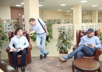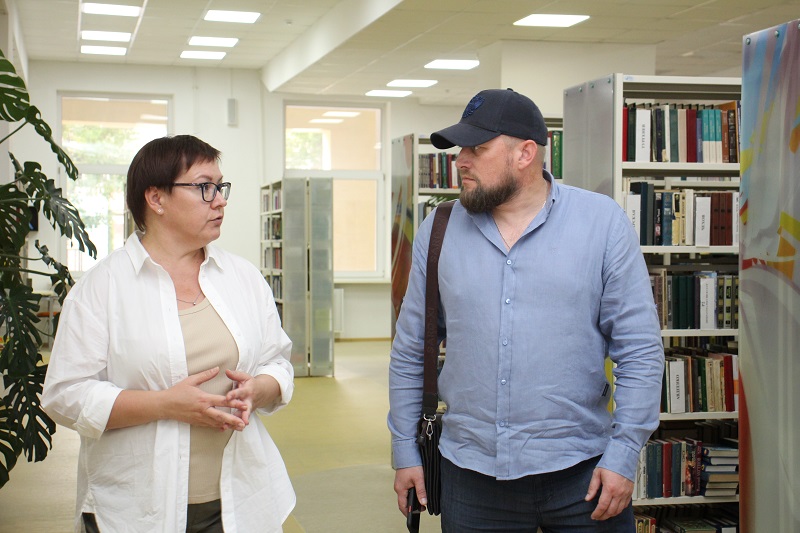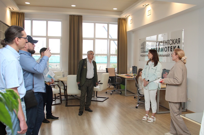 Культурная и деловая программа круглого стола была продолжена экскурсией по библиотеке имени Горького. Выставки, посвященные истории книги и библиотеки, галереи, в которых представлено творчество рязанских художников, просторные залы для работы и чтения произвели большое впечатление на гостей. Они побывали также в обновленном центре консервации и реставрации библиотечных фондов Рязанской области.