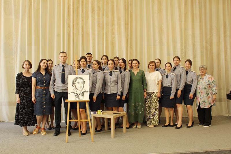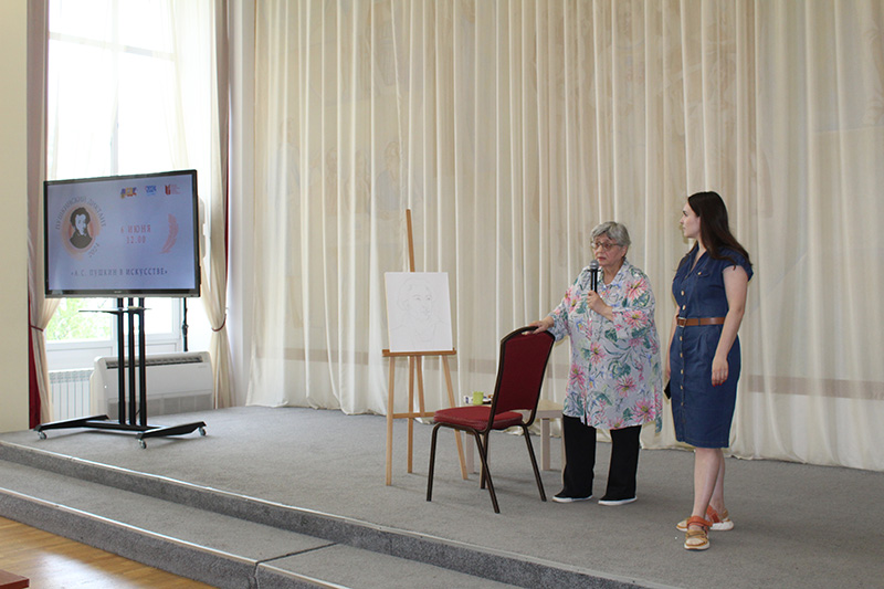 В большом конференц-зале под звуки классической музыки художник-педагог, член Союза художников России и Международной федерации художников Светлана Мурадова создавала живописный портрет А.С. Пушкина.