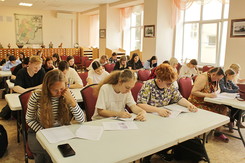 Главной площадкой диктанта в г. Рязани традиционно стала библиотека им. Горького. В нескольких залах диктант писали около ста человек – студенты, курсанты, школьники, взрослые и совсем юные почитатели творчества Александра Сергеевича Пушкина. Задания диктанта были сформированы по возрастным категориям, на их выполнение отводилось от 40 минут до 60 минут.