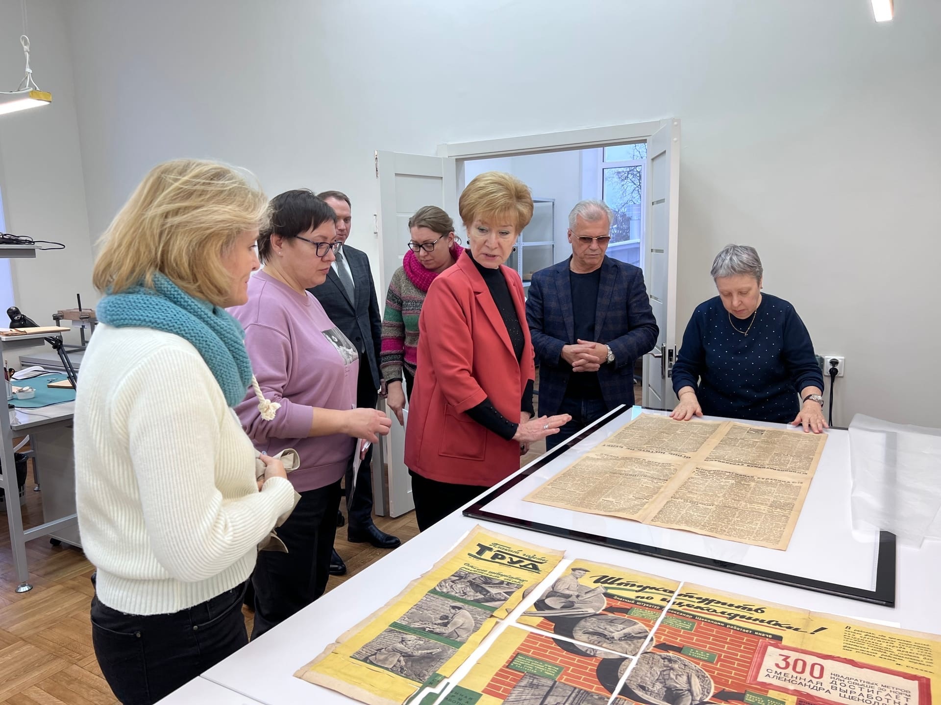 Сегодня рязанский центр консервации и реставрации библиотечных фондов посетили кураторы проекта – заместитель генерального директора Российской государственной библиотеки Владимир Гнездилов, начальник отдела комплексных проектов по сохранности фондов Российской государственной библиотеки Ольга Саломатина и специалист по сохранности фондов Юлия Морозова.