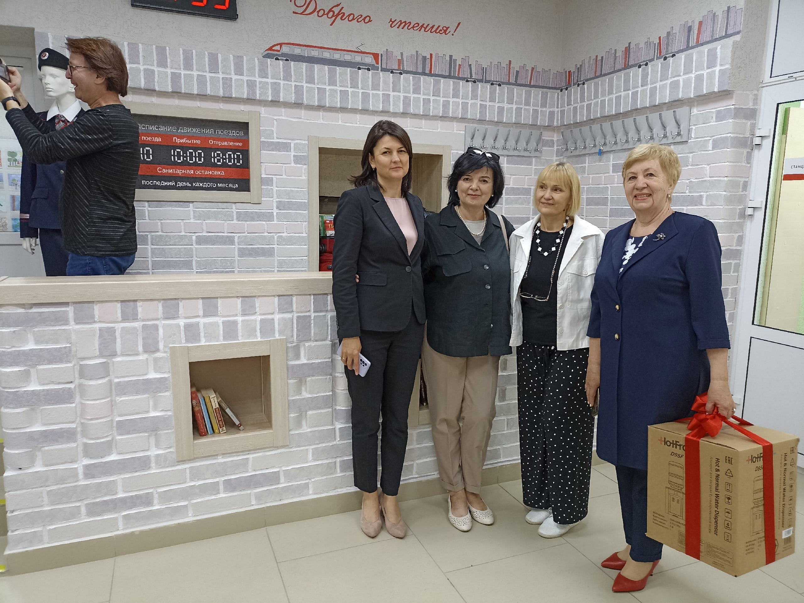 В открытии приняли участие и поздравили коллектив библиотеки начальник управления культуры администрации города Рязани Ольга Николаевна Голева, директор Рязанской областной детской библиотеки Татьяна Николаевна Окружная и руководитель Рязанского регионального обособленного подразделения Дорожной территориальной организации Российского профессионального союза железнодорожников и транспортных строителей на МЖД (Дорпрофжел) Марина Николаева.