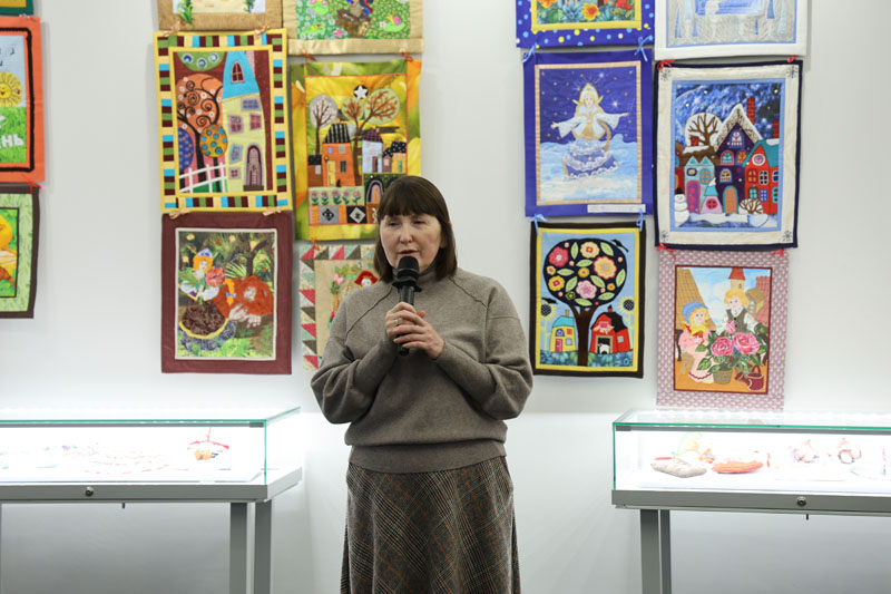 Гостей поприветствовала куратор выставки Марина Алексеевна Абрамова. Она поблагодарила клуб «Волшебный лоскуток» за многолетний труд и ту красоту, которую создают участники объединения. От лица директора библиотеки имени Горького, заслуженного работника культуры РФ Натальи Николаевны Гришиной и всех сотрудников она поздравила руководителя клуба и участников с открытием экспозиции.