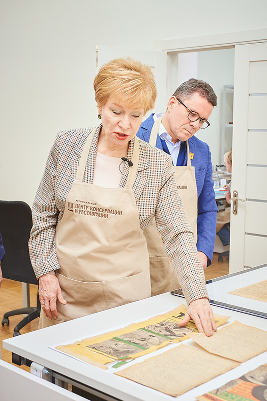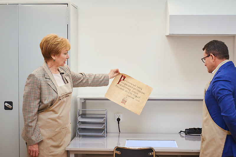 Вадим Дуда торжественно вручил Наталье Гришиной грамоту – свидетельство об открытии регионального центра консервации и реставрации библиотечных фондов. В ответ она поблагодарила команду Российской государственной библиотеки за возможность стать пилотным проектом, участие и всемерную поддержку на всех этапах работы.