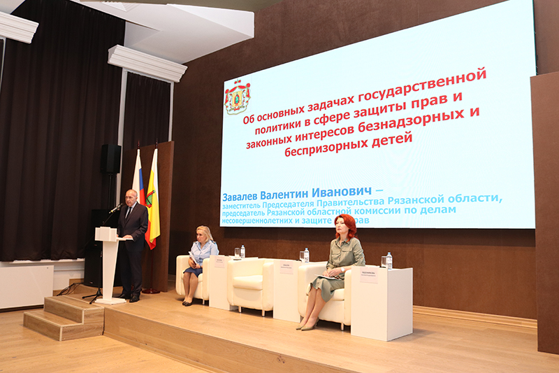 От имени Губернатора Рязанской области Павла Малкова собравшихся приветствовал заместитель Председателя Правительства региона, председатель Рязанской областной комиссии по делам несовершеннолетних и защите их прав Валентин Завалев. «От качества работы с детьми зависит будущее страны. Сегодня государство нацелено на создание условий, способствующих всестороннему развитию детей, воспитанию в них патриотизма, гражданственности, уважения к окружающим. Защита прав каждого нуждающегося ребенка, создание эффективной системы профилактики правонарушений, совершаемых как детьми, так и в отношении них, определены ключевыми задачами деятельности комиссий по делам несовершеннолетних», – отметил Валентин Завалев.