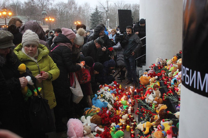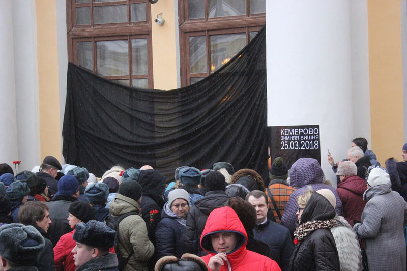 Память погибших собравшиеся почтили минутой молчания. К импровизированному мемориалу у стен филармонии были возложены цветы, игрушки, зажжены свечи, отслужена лития. Многие из пришедших не могли сдержать слёз- трагедия в Кемерове потрясла всю Россию.