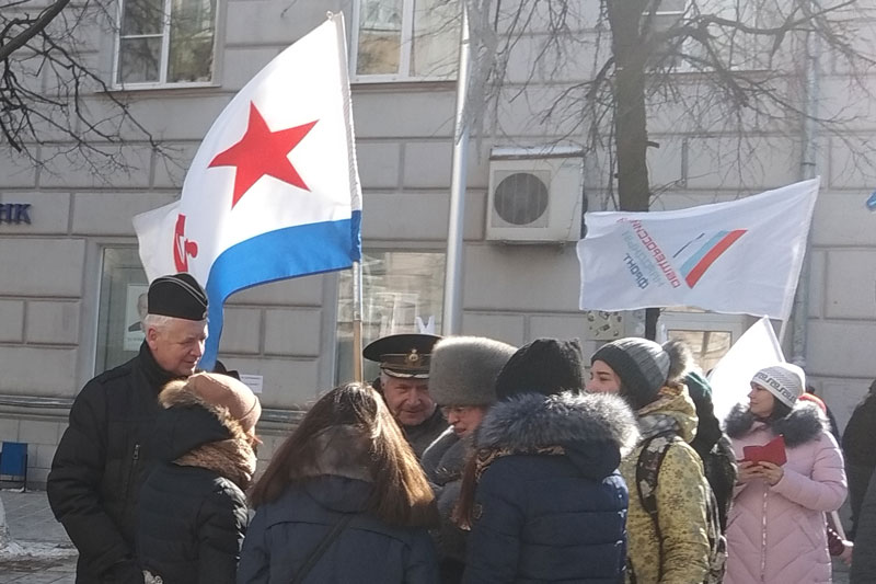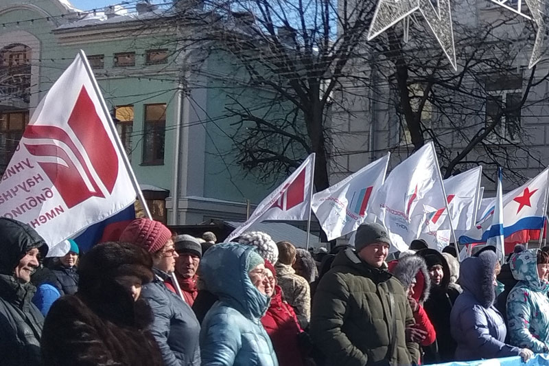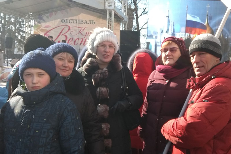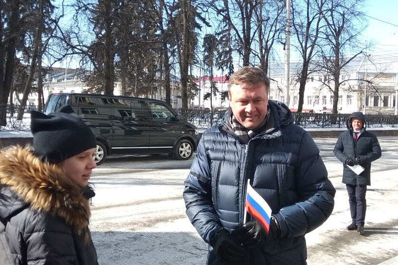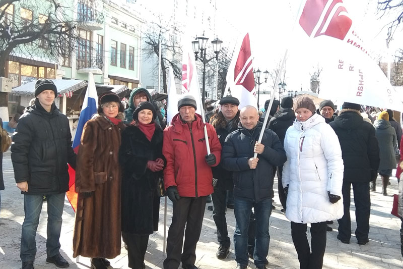 На празднике присутствовали первые лица города и области, представители политических партий и общественных организаций. Несмотря на крепкий мороз, не свойственный марту, на Почтовой собралось много рязанцев, которые принесли с собой плакаты, посвященные одному из важнейших событий в новейшей истории России. Сотрудников библиотеки, присутствовавших на митинге, можно было сразу узнать по развевающемуся над головами флагу «Горьковки».