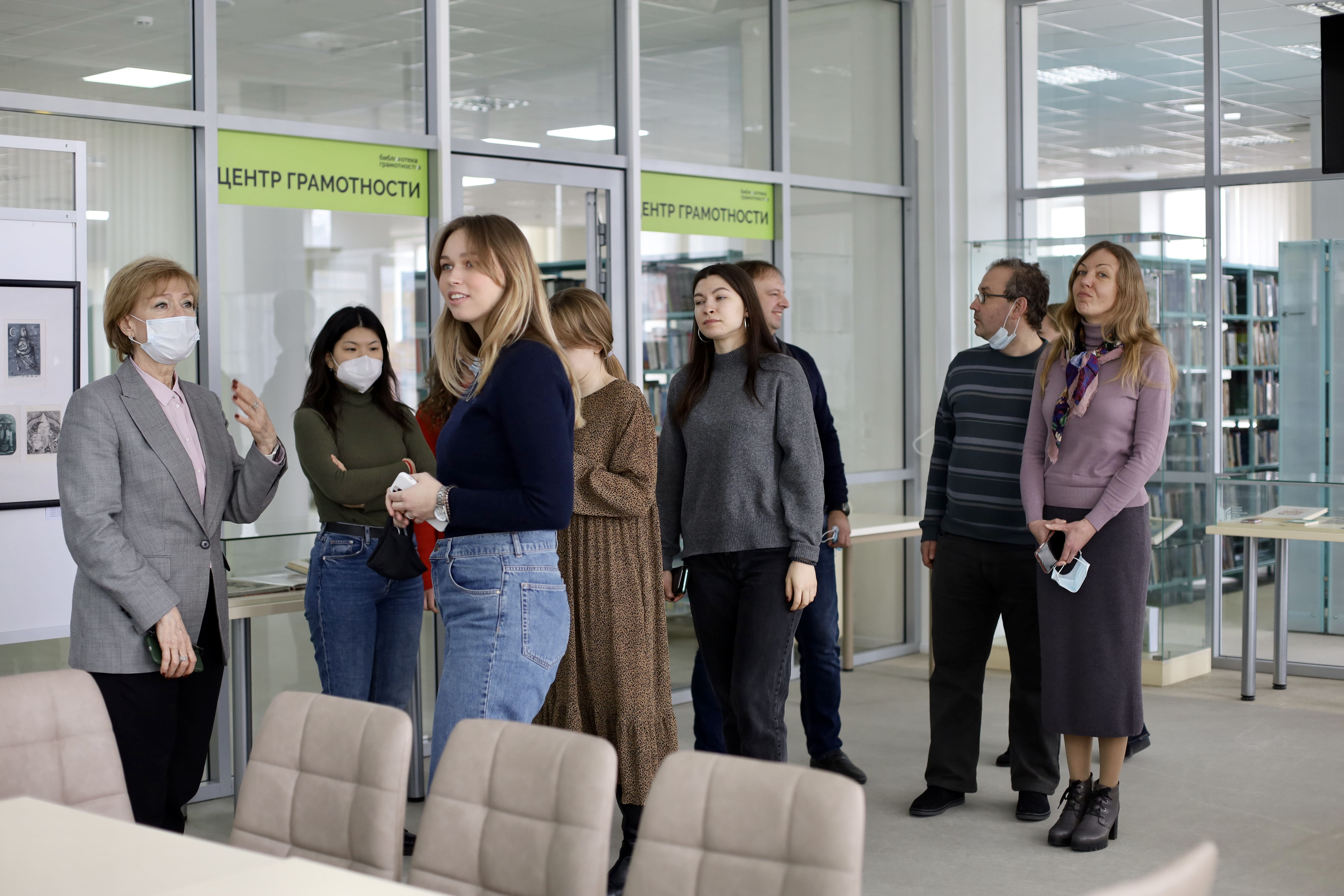 Наталья Николаевна Гришина познакомила гостей с библиотекой, обратив особое внимание гостей на то, как она работает с местным сообществом, своими многочисленными партнерами.