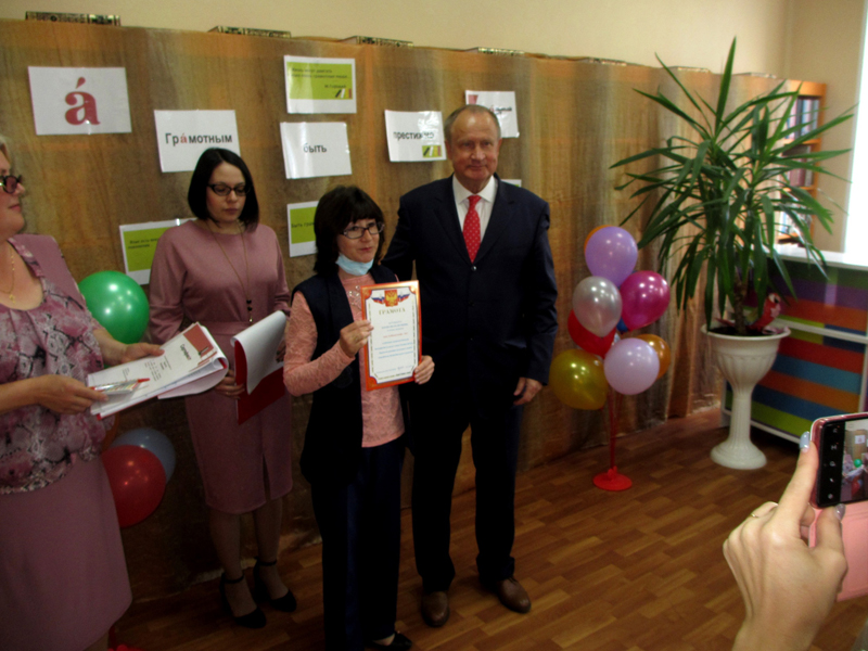 Заместитель директора Рязанской областной библиотеки имени Горького Светлана Винокурова поздравила коллег и вручила сертификат об открытии Центра грамотности.
