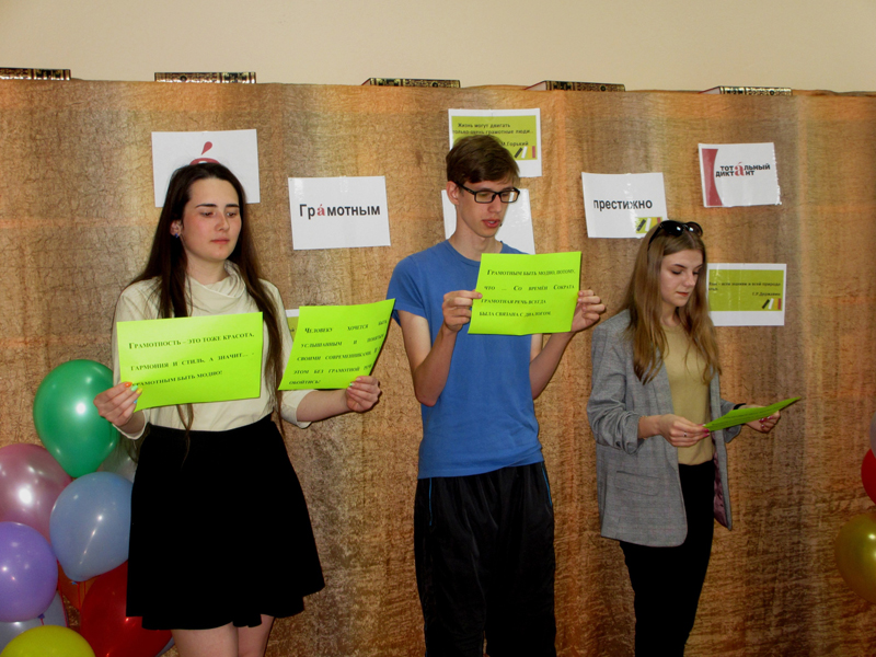 Далее прошел филологический флешмоб от юных читателей библиотеки, а все гости мероприятия приняли участие в квизе «50 вопросов о русском языке».