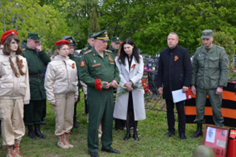 В церемонии перезахоронения останков приняли участие представители администрации Рыбновского района, общественных организаций, Движения Первых, родственники воина, жители села.