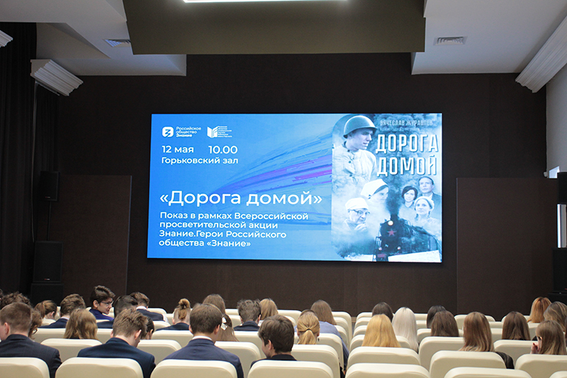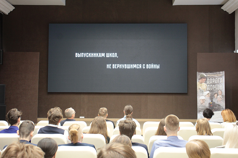 Символично, что в акции Знание.Герои Российского общества Знание приняли участие школьники гимназии № 2, потому как Арсений Благонравов в далеком 1941 году также окончил эту школу и даже успел поступить в Рязанский педагогический институт, а в сентябре был призван в ряды Рабоче-крестьянской Красной армии. После просмотра фильма ребята задали гостям множество вопросов о тонкостях съемок, бюджете картины. При этом все школьники выразили восхищение качеством и эмоциональным воздействием «Дороги домой».