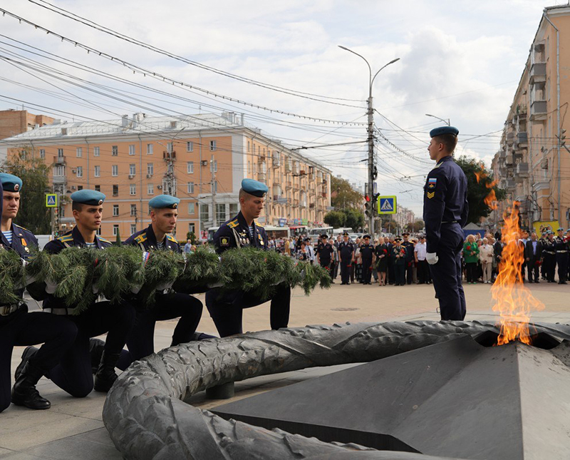 На мемориальном комплексе «Монумент Победы» состоялась церемония возложения Гирлянды Воинской Славы и цветов. Прозвучал гимн Российской Федерации. Память павших почтили минутой молчания. В честь Героев был дан троекратный ружейный салют. Торжественным маршем прошли курсанты Рязанского гвардейского высшего воздушно-десантного ордена Суворова дважды Краснознаменного командного училища имени генерала армии В.Ф. Маргелова.