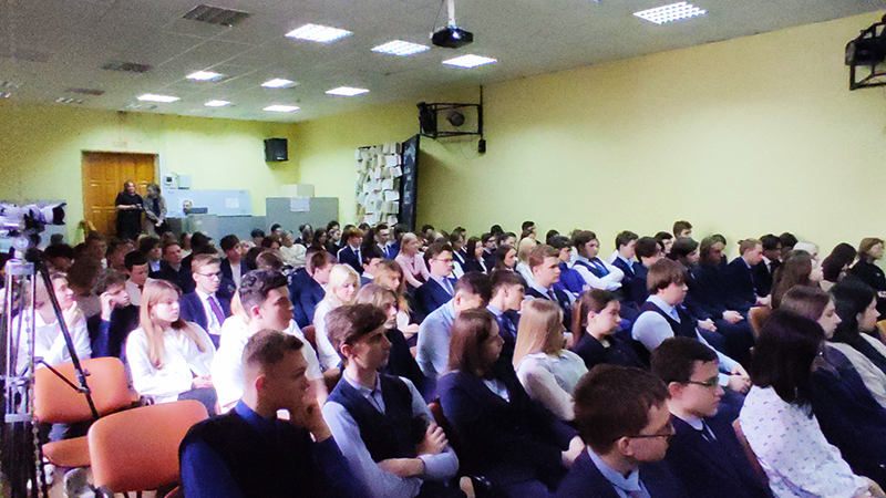 Учащиеся гимназии задавали вопросы Андрею Ивановичу об истории Донецкого государственного университета и частоте «прилетов» по городу. Сергей Владимирович Рудь уже после лекции ответил на вопросы учащихся о своем боевом опыте в Чечне.