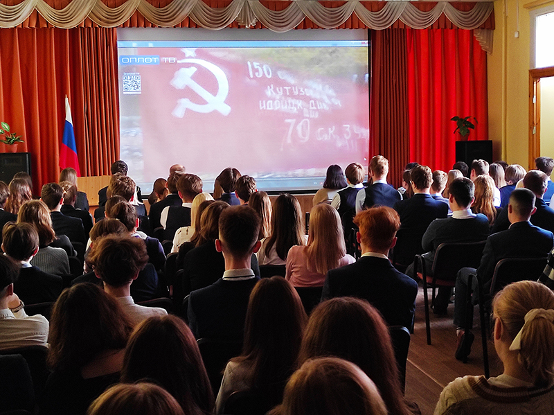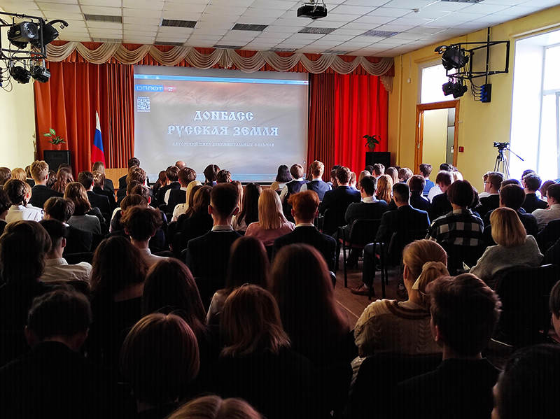 Профессор Минаев продемонстрировал учащимся фрагмент документального фильма донецкой телекомпании «Оплот ТВ» «Донбасс – русская земля», где рассказывается об истории образования российской государственности и промыслов на Донбассе. Андрей Иванович также прочитал ребятам свои стихи, чем вызвал бурю аплодисментов и слова поддержки от начинающих школьных поэтов, мыслям которых стихи профессора оказались созвучны.