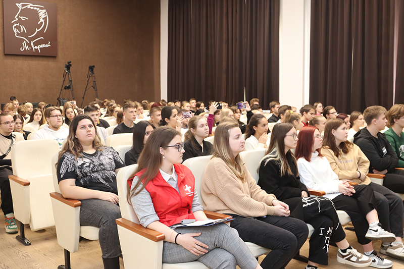 Вера Анатольевна Буковская, главный библиотекарь кафедры периодических изданий, рассказала студентам и абитуриентам о проекте «Детское прочтение Якова Полонского», который в 2021 году получил поддержку Президентского фонда культурных инициатив. Книга, ставшая итогом работы по проекту, была передана в качестве подарка в фонд библиотек обоих колледжей.