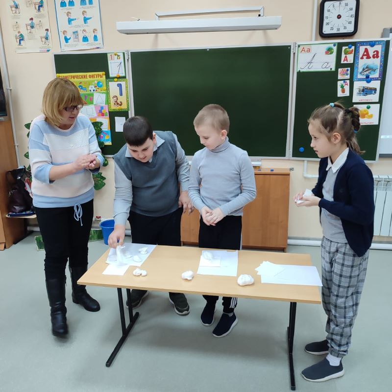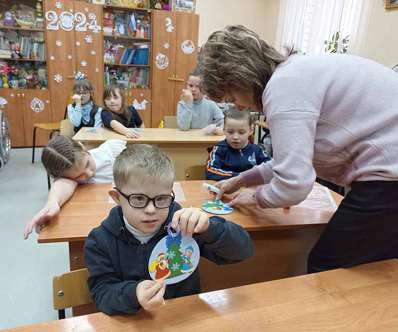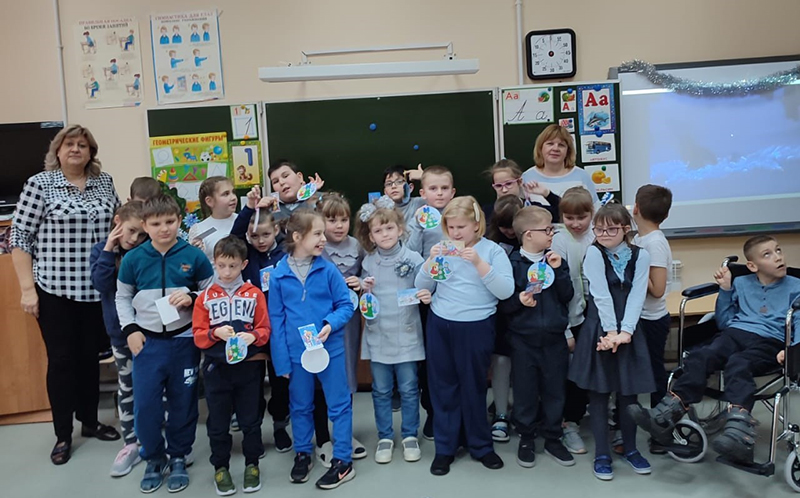 Детям рассказали о традициях празднования Нового года и Рождества на Руси, о появлении первых елочных украшений в России, о том, что Дед Мороз живет в Великом Устюге – городе с богатой и древней историей. Школьники посмотрели отрывки из мультфильмов про зиму, поучаствовали в веселых конкурсах и новогодней викторине, рассказали, как встречают праздники в их семьях. А чтобы поздравить своих друзей и близких в дни новогодних каникул, ребята сделали елочную игрушку-открытку.