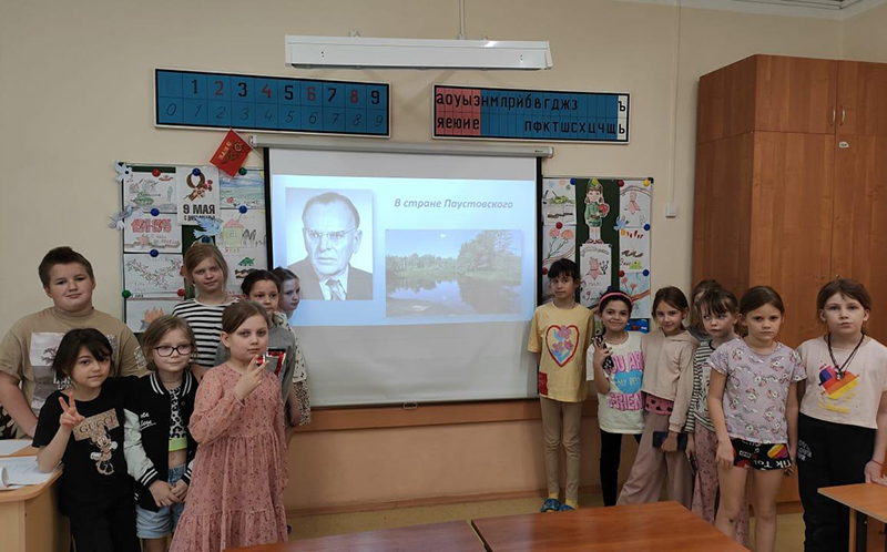 На мероприятии школьники узнали интересные факты из биографии писателя, вспомнили сюжеты и героев сказок Паустовского, посмотрели мультфильм «Растрепанный воробей» по одноименному рассказу, разгадали увлекательные загадки, шарады и ребусы.