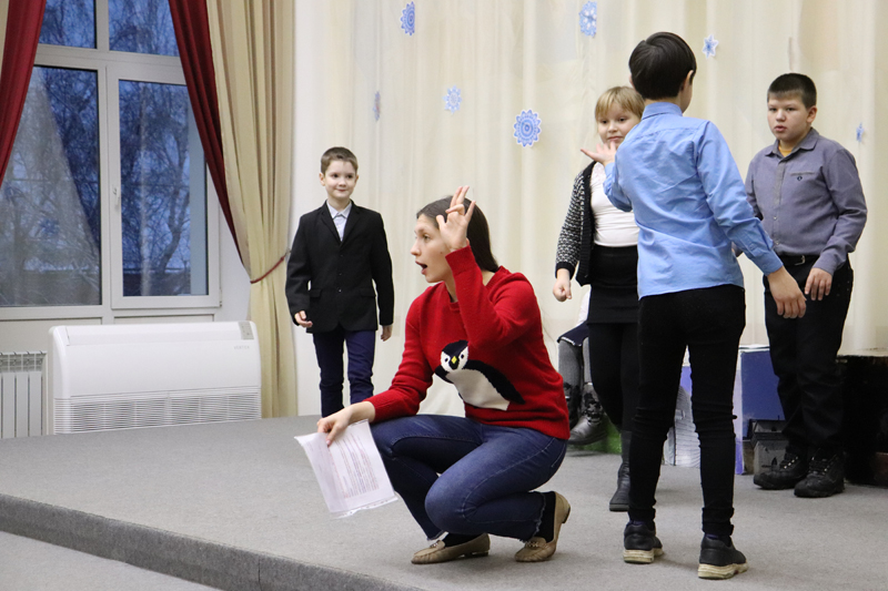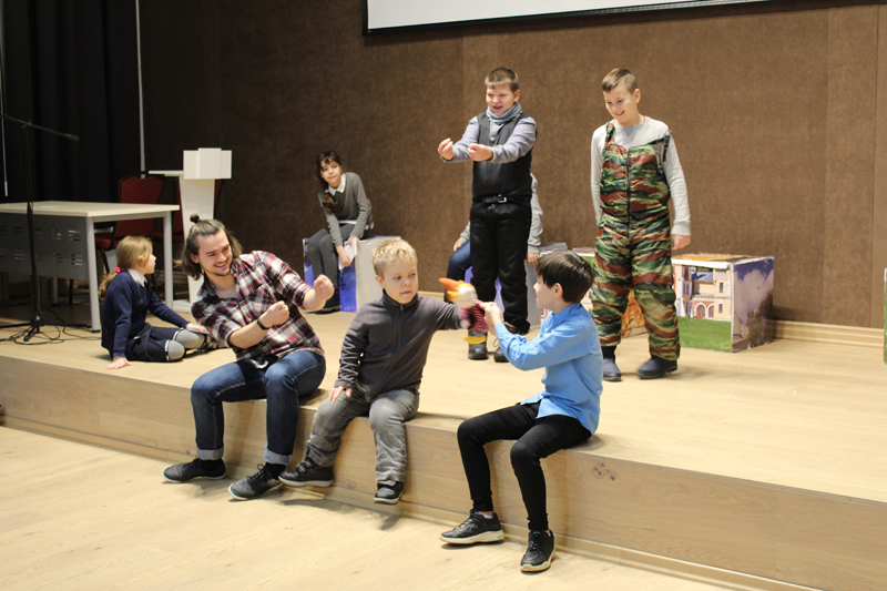 Но на каникулах участники проекта не только развлекались, они много работали. Прошло несколько репетиций. Юные артисты вживались в свои роли, многократно разыгрывали сцены из спектакля, осознавая, что актерский труд не легок. Уверенности в своих силах им добавило занятие с психологом Натальей Дуванской.