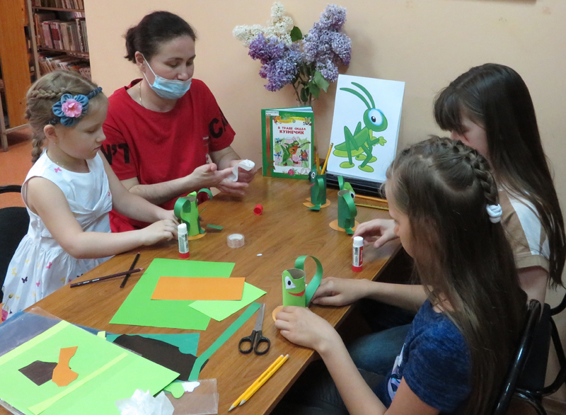 Руководитель клуба рассказала домовятам об особенностях жизни кузнечиков: как они выглядят, чем питаются, каких имеют врагов, что помогает им стрекотать, где у них находятся уши. Дети с удовольствием посмотрели видеоролик про веселого кузнечика.