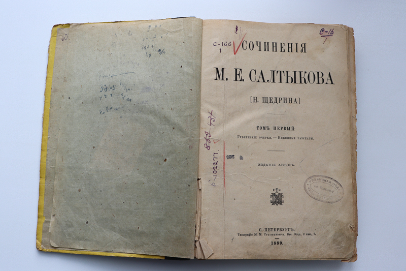 В региональном центре консервации и реставрации библиотеки имени Горького завершена кропотливая работа по восстановлению первого тома собрания сочинений Михаила Евграфовича Салтыкова-Щедрина. Эта книга является частью девятитомного собрания сочинений, подготовку к выпуску которого автор вел в последние месяцы жизни. В середине апреля 1889 года первый том вышел в свет в типографии М. М. Стасюлевича. Остальные тома писатель уже не увидел.