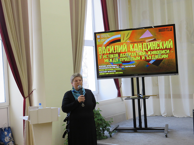 В клубе «ОЛИМП» состоялась лекция-концерт «Василий Кандинский. У истоков абстрактной живописи – между прошлым и будущим». Ее подготовила и провела преподаватель РМК им. Г. и А. Пироговых Ирина Нестерова с участием преподавателей и студентов колледжа, солистки Рязанского областного музыкального театра, учащейся Московского Губернского колледжа искусств.