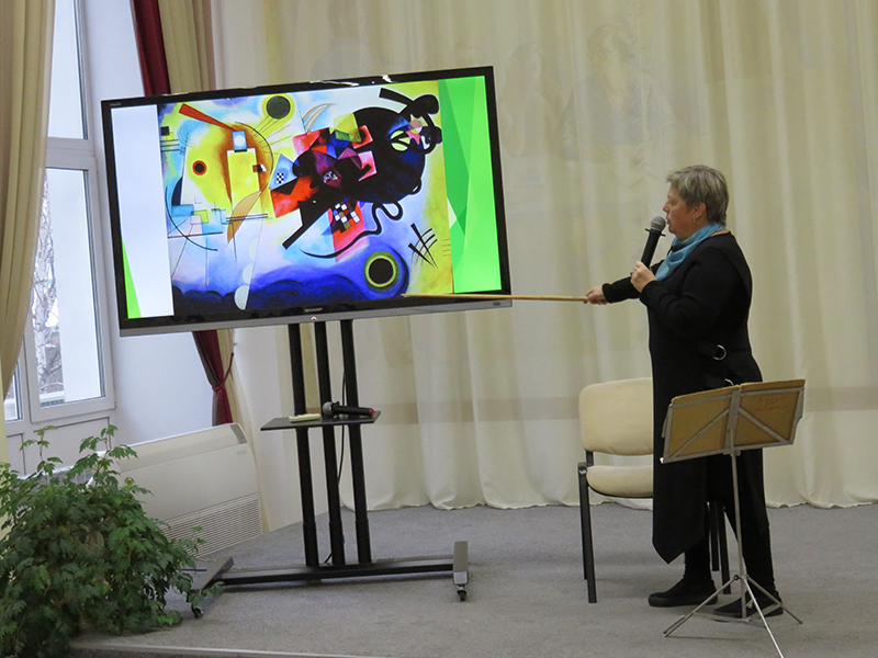 Слушатели познакомились с основными периодами жизни и творчества известного во всем мире русского художника и теоретика изобразительного искусства Василия Кандинского (1866–1944). Это ярко и разносторонне одаренный живописец, неутомимый исследователь, один из основоположников нового течения в живописи – абстракционизма, чье творчество навсегда изменило облик искусства XX века.