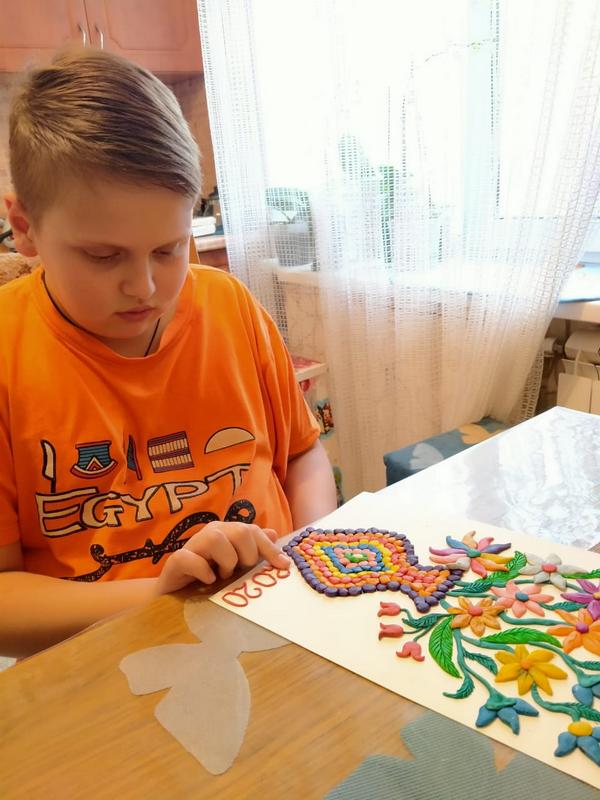 В очередной раз посетили онлайн-мастерскую Матвей Шахов и Никита Гукин! Ребята с помощью волонтера Варвары Фроловой увлеченно лепили из пластилина вазу с цветами. Работа была сложная и требовала усидчивости. Братья раскатывали шарики разных цветов, чтобы в итоге получилась такая прекрасная ваза!