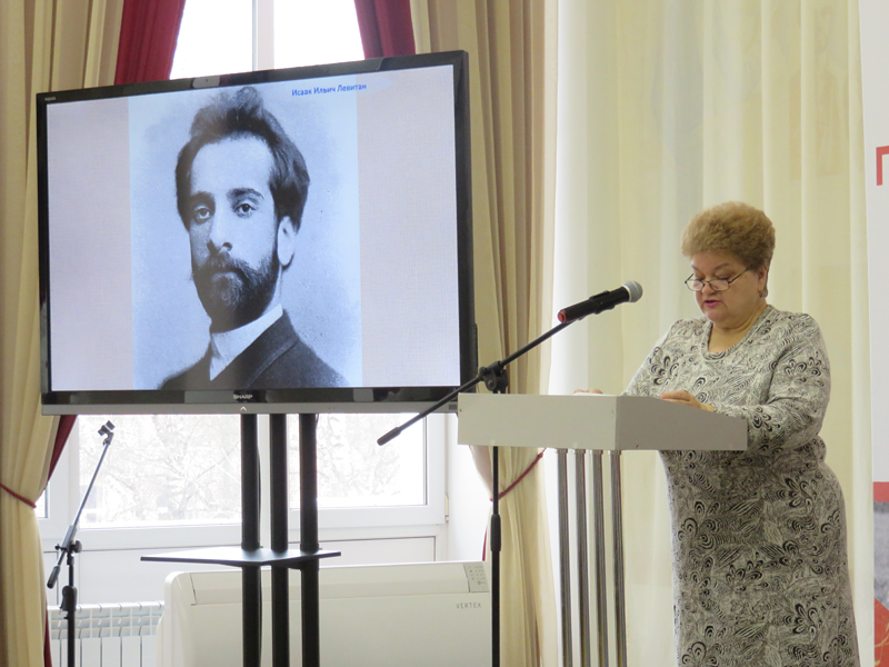 Прекрасной иллюстрацией к рассказу ведущей стал показ слайд-шоу с чудесными пейзажами художника, знаменующими определенные этапы его творчества. Зрители увидели его знаменитые полотна: «Осенний день. Сокольники», «Солнечный день. Весна», «Вечер на пашне», «Березовая роща», «Золотая осень», «У берега моря. Крым», «Лесные фиалки и незабудки», «После дождя. Плёс», «Весна в Италии», «Тихая обитель», «Свежий ветер. Волга», «Весна. Большая вода», «У омута», «Владимирка», «Над вечным покоем» и другие.