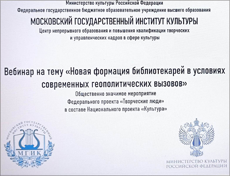 Вебинар «Новая формация библиотекарей в условиях современных геополитических вызовов»