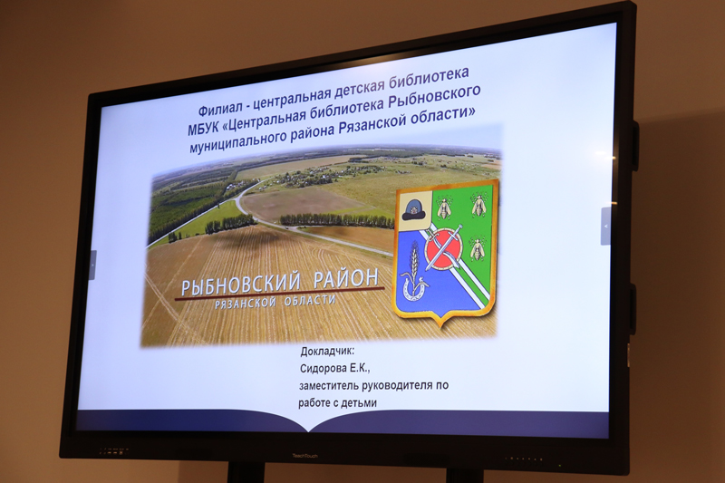 С презентационным материалом о Рыбновском районе, его истории, известных уроженцах и современном состоянии выступила заместитель директора по работе с детьми Центральной библиотеки Рыбновского района Сидорова Елена Константиновна. Она рассказала, как улучшится работа с детьми после преобразования детской библиотеки.