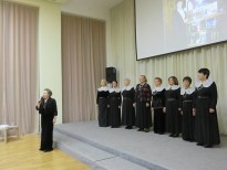 Большой интерес вызвали видеоматериалы с воспоминаниями режиссера, профессора Рязанского государственного радиотехнического университета им. В.Ф. Уткина Николая Царева, пианистки С.А. Борисовой, концертный номер в исполнении Полины Борисовой (скрипка) и Оксаны Сушковой (арфа), авторские стихи Владимира Сохрина.