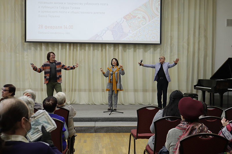 В рамках проекта «Искусство жить вместе» в библиотеке прошел литературно-музыкальный вечер, посвященный жизни и творчеству известного узбекского поэта и публициста Гафура Гуляма и видного армянского поэта, переводчика и общественного деятеля Ваана Терьяна.