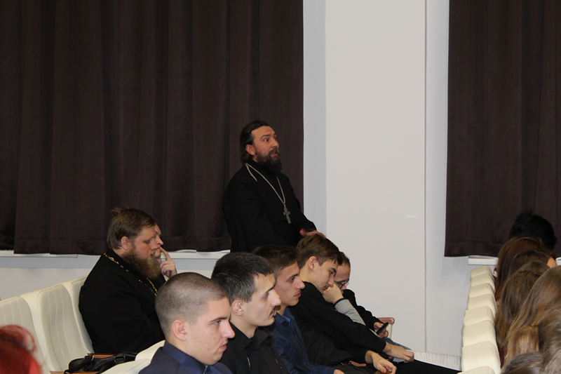 Протоиерей Сергий Рыбаков, председатель отдела религиозного образования и катехизации Рязанской епархии, заведующий кафедрой теологии Рязанского государственного университета имени С.А. Есенина, кандидат физико-математических наук, в докладе «Политика и религия в современном информационном аспекте» поставил вопрос о том, светское ли у нас государство. Прослеживая тему от императора Петра I до современности, докладчик констатировал ряд важных мыслей: история не приобрела достаточной целостности в этноисторическом и конфессиональном аспектах; акт Великой Победы мы не освещаем должным образом, эта Победа – главная в череде многих побед.