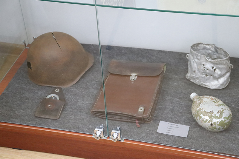 Дополняют выставку уникальные экспонаты – обмундирование, оружие, гильзы, штык-ножи, награды, знаки отличия, предоставленные региональным отделением Общероссийского общественного движения по увековечению памяти погибших при защите Отечества «Поисковое движение России» и музеем 141-й Краснознаменной стрелковой дивизии школы № 49 г. Рязани.