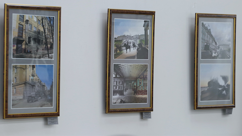 Выставку сопровождают фотографии Сергея Ларёнкова, работающего в жанре исторической фотореконструкции, или таймерографии, уроженца Санкт-Петербурга, автора проекта «Связь времен». Фотографии предоставлены фондом социальных инициатив «Мирные люди» (Санкт-Петербург).