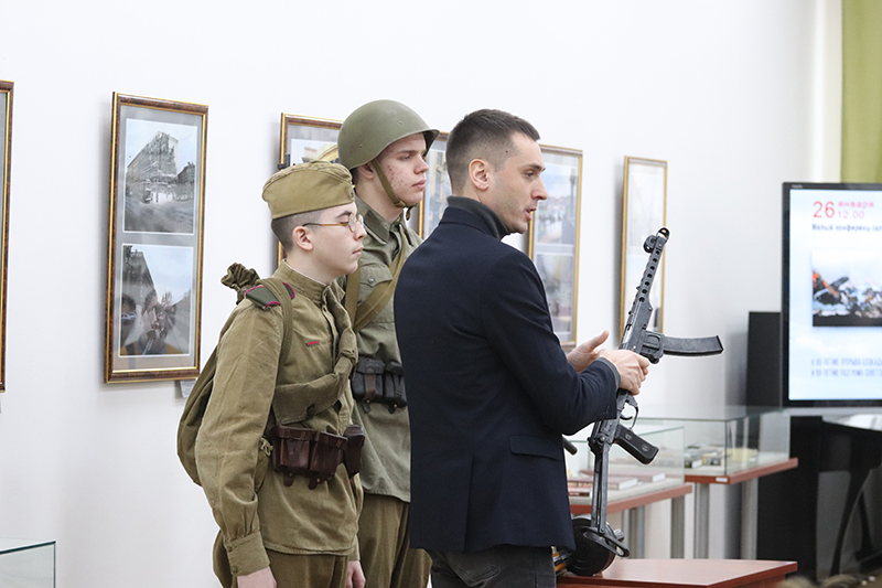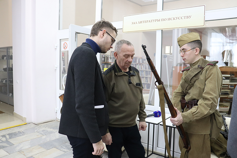 Большой интерес у молодежи вызвал рассказ бойцов отряда «Верность» Рязанского регионального отделения Общероссийского общественного движения по увековечению памяти погибших при защите Отечества «Поисковое движение России» Никиты Чуваева и Артемия Булыгина об оружии и обмундировании красноармейцев в период Великой Отечественной войны.