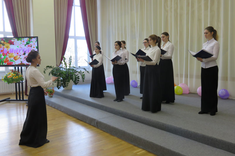 В исполнении солисток были исполнены хоровые произведения Дж. Верди: хор «Прославление невесты» из оперы «Оберто» (Диана Никитина), первой оперы, принесшей известность композитору, «Хор девушек» из оперы «Аида» (Татьяна Аброскина), премьера которой на открытии нового театра в Каире произвела настоящий фурор, хор «Здесь, под сенью листвы» из оперы «Дон Карлос» (Виолетта Мухамедгалиева), крайне популярной в Европе. Творчество А. Даргомыжского было представлено хорами из оперы «Русалка»: хоры русалок – «Любо нам» (Ирина Арцибасова»), «Тише, тише, птичка под кустами встрепенулася» (Вероника Полюхина); хор девушек «Сватушка». Отдельным номером звучал романс на стихи М. Лермонтова «Мне грустно» (Анастасия Розман). Из Вагнера слушателям были представлены: «Свадебный хор» из оперы «Лоэнгрин» (дирижер – Татьяна Кабацкова), «Хор пилигримов» из оперы «Тангейзер» (дирижер – Наталья Конина).